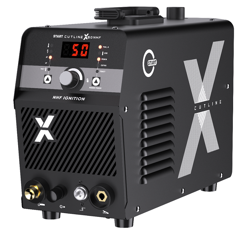 START CutLine X50 NHF - легкий и компактный источник воздушно-плазменной резки с пневмоподжигом предназначен для резки углеродистой стали, нержавеющей стали, алюминиевых сплавов, меди и других цветных металлов.